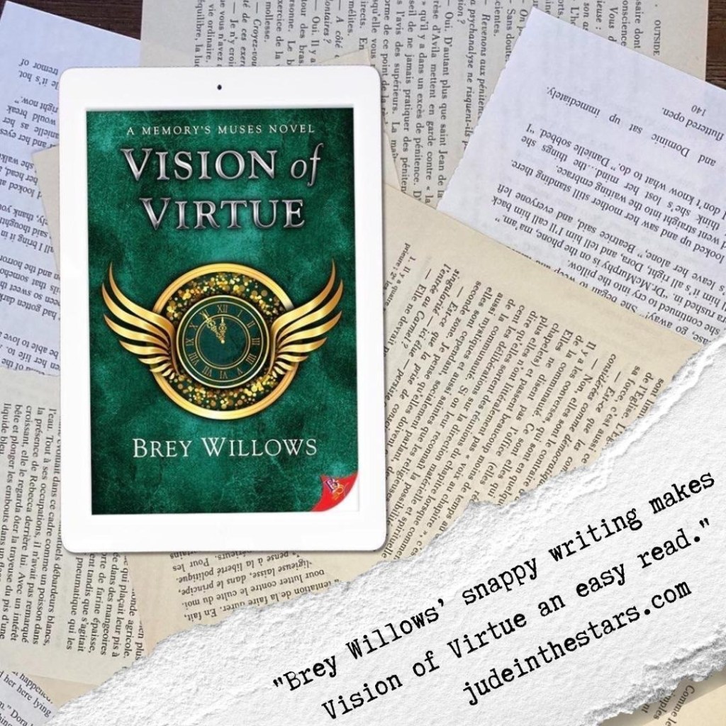 Vision of Virtue is the second book in the Memory’s Muses series, itself a spinoff of the Afterlife series (which I haven’t read yet). While I loved the first book, Song of Serenity, this one didn’t work as well for me. I usually like the Sunshine/Grumpy and opposites attract tropes but everything felt heavy-handed. I had the feeling what happened to the book is what the author writes about in the book: the search for balance between light and heavy, between striving for joy and being aware of reality. The merge of the two TV shows is a perfect example: Clio’s show is all about entertainment (the description reminded me of a show I used to watch as a child, Intervilles), Kit’s one hundred per cent information, mixing them together results in infotainment. When it works, it can be excellent. When it doesn’t, it can feel like it’s trying too hard to cram too many things in one session. Even so, Brey Willows’ snappy writing made Vision of Virtue an easy read.