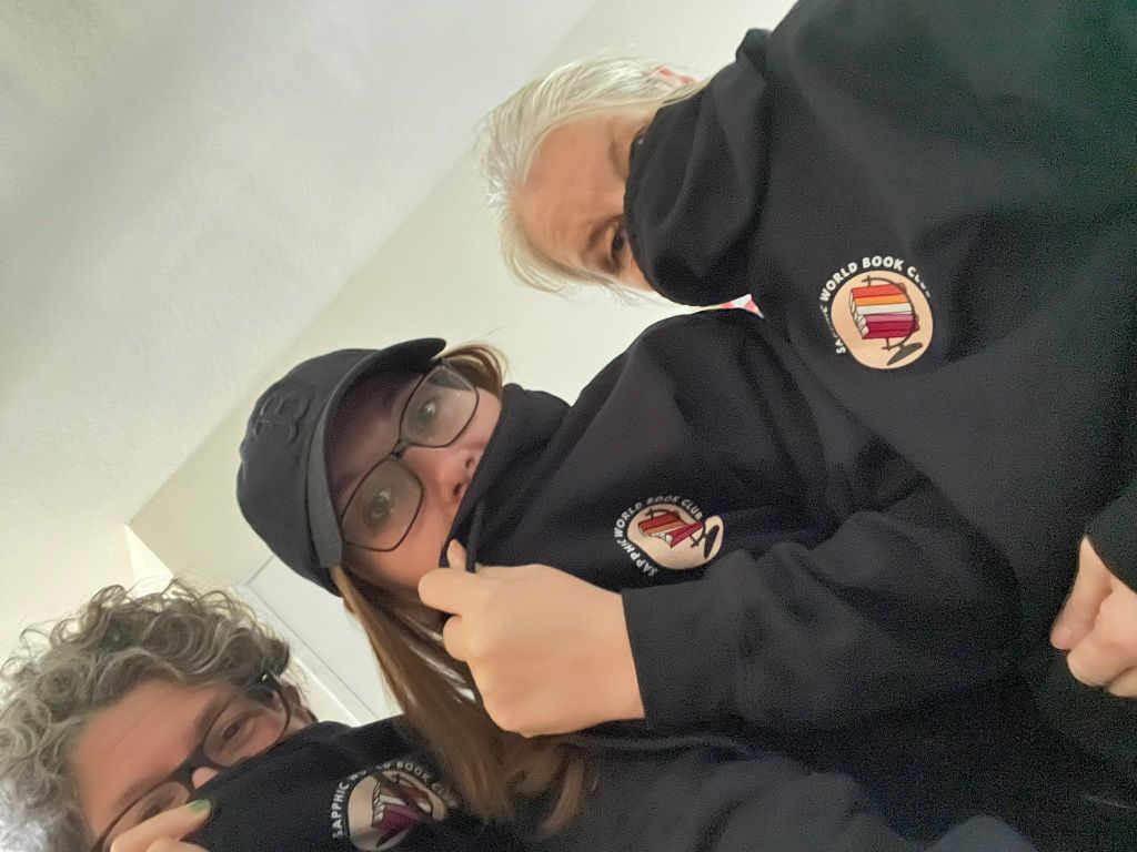 With Mila & Em in our World Sapphic Book Club hoodies