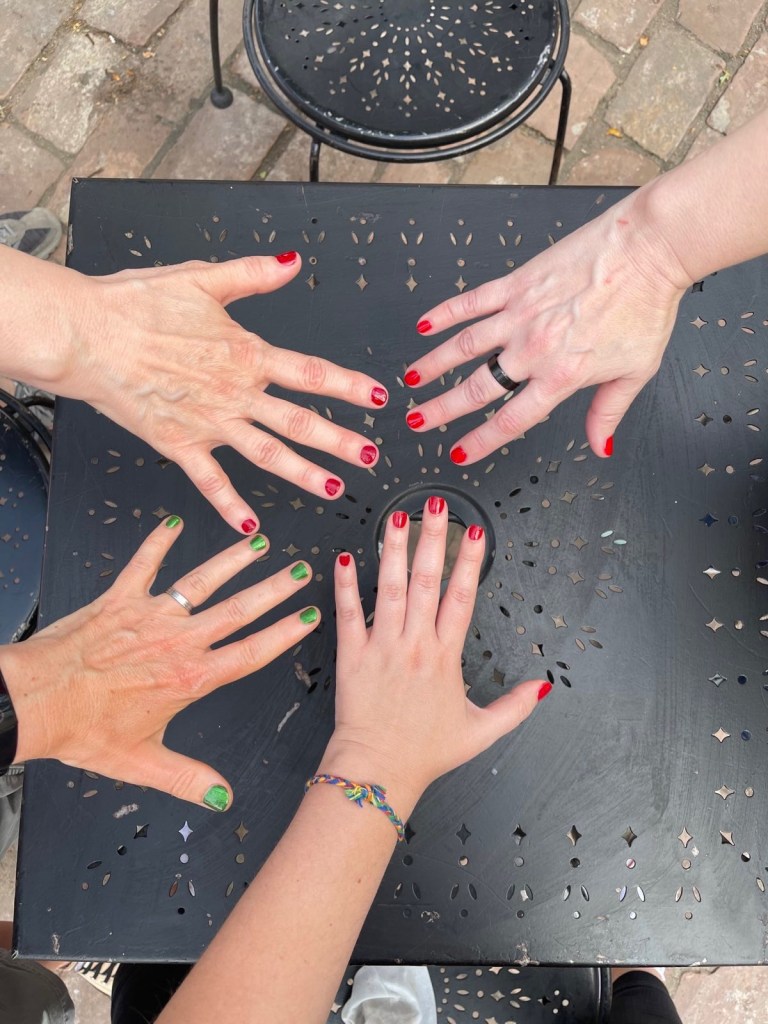 I got my nails done (green) and ate ice cream at a place recommended by the ice cream expert that is Karin Kallmaker.